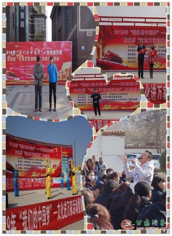 由中共甘肅省委宣傳部、甘肅省文化和旅游廳主辦,甘肅演藝集團(tuán)承辦的2019“我們的中國夢”文化進(jìn)萬家暨“隴原紅色文藝輕騎兵”惠民演出活動于1月19日拉開演出的帷幕,截止到2019年2月1日,甘肅省話劇院有限責(zé)任公司“隴原紅色輕騎兵”演出小分隊分別走進(jìn)安寧社區(qū)、石油化工三葉公司、白銀市景泰縣、酒泉市泉湖鎮(zhèn)、金塔縣金大村、解放軍某部隊、武警某中隊,為廣大的人民群眾、人民子弟兵送上了一場場豐富多彩的“文化視聽盛宴”。