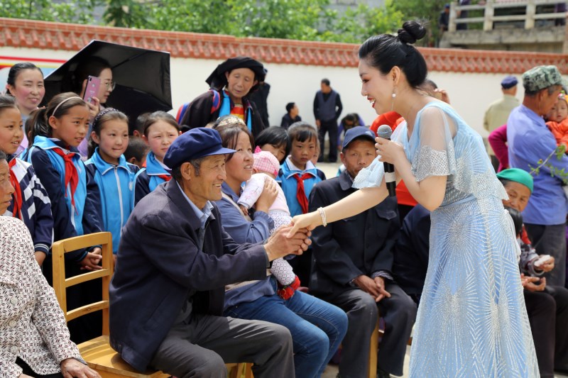 一位拄著拐杖、行走頗為艱難的老奶奶看完演出后,指著身穿漂亮服裝的演員激動地說:“這些娃娃人長得俊,歌唱得好,舞也跳得好,要是她們就住在我們村不走了該多好……”