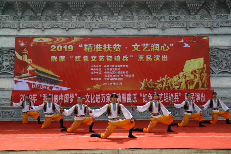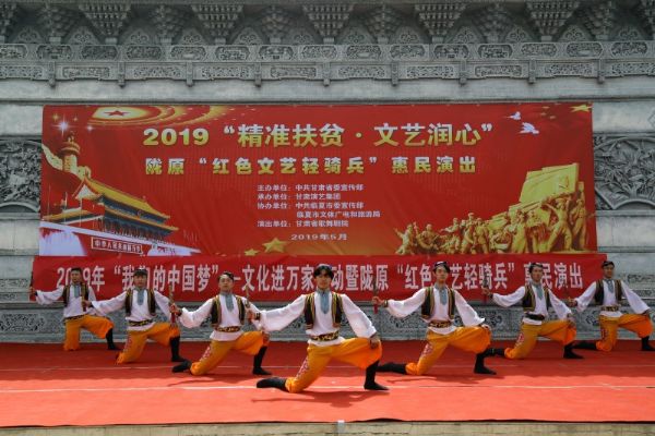 繼甘肅演藝集團2019年“我們的中國夢”——文化進萬家暨隴原“紅色文藝輕騎兵”省歌舞劇院小分隊惠民演出在舟曲落下帷幕之后,演職人員又精彩接力,于5月13日、14日分別在臨夏折橋鎮(zhèn)、東區(qū)街道、南龍鎮(zhèn)、茶馬古市傾情呈現(xiàn)四場高水準文藝節(jié)目,對今年惠民演出季予以別樣點綴,使得這個絢麗的季節(jié),成為當(dāng)?shù)剜l(xiāng)親們難以忘卻的美好記憶。