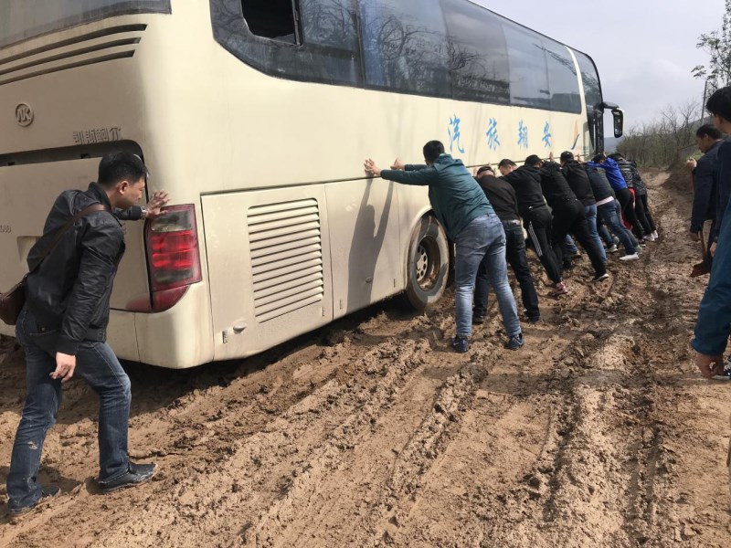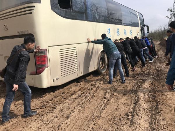 演出途中,連續(xù)的陰雨天氣造成路面濕滑,演出車輛深陷泥潭,無法駛向演出場地,省話劇院小分隊(duì)領(lǐng)導(dǎo)吳雪林、劉寧帶頭下車,拿鐵鍬、鏟淤泥,與演職人員一起同心協(xié)力把演出車輛從泥濘中推出。從而確保了演出的時(shí)間和效率。