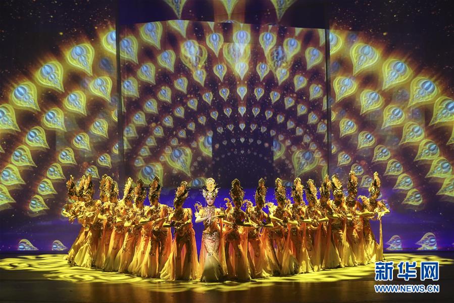 5月28日,演員在《相約千年》中表演。 當(dāng)日,由甘肅演藝集團(tuán)創(chuàng)排的大型傳統(tǒng)主題歌舞《相約千年》在蘭州黃河劇院首演。 新華社發(fā)(馬希平 攝)