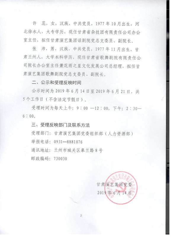 甘肅演藝集團關(guān)于干部任前公示的公告
