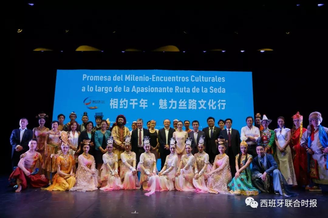 6月30日晚七時(shí),由中華人民共和國國務(wù)院新聞辦公室、中華人民共和國駐西班牙王國大使館主辦,五洲文化交流有限公司承辦,北京三角傳媒文化發(fā)展有限公司協(xié)辦,甘肅演藝集團(tuán)出演的《相約千年•魅力絲路文化行》大型歌舞演出在馬德里CBA(Circulo de bellas artes)文化中心劇場上演。國務(wù)院新聞辦公室副局長任向群,甘肅省委常委、宣傳部部長陳青,中國駐西班牙大使館公參姚飛,西班牙人民黨參議院發(fā)言人科西多,甘肅演藝集團(tuán)董事長陳其銀以及當(dāng)?shù)馗鹘缬讶?,僑界代表等觀看了精彩的節(jié)目表演。