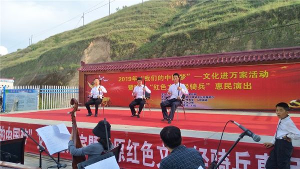 2019年7月12日、13日,甘肅演藝集團2019“我們的中國夢”——文化進(jìn)萬家暨隴原“紅色文藝輕騎兵”秦腔藝術(shù)劇院小分隊在劇院黨總支書記、總經(jīng)理崔華功同志的帶領(lǐng)下,在接連完成華池縣、環(huán)縣車道鎮(zhèn)演出任務(wù)后,轉(zhuǎn)戰(zhàn)環(huán)縣毛井鎮(zhèn)為當(dāng)?shù)厝嗣袢罕妰A情呈現(xiàn)了2場精彩的演出。